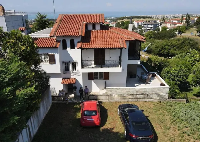 The 2-bedroom Τraditional Fully Detached Villa On A Luxurious Hillock Of Thessaloniki With Its Own Garden Also For Family & Wedding Gatherings For 10 To 25 People Only 15 Minutes From Airport is located 15 minutes' drive from Archaeological Museum of Thessaloniki and provides cycling and darts for active guests. The property boasts a sundeck and barbecue, while Finikas is 3.2 km away.